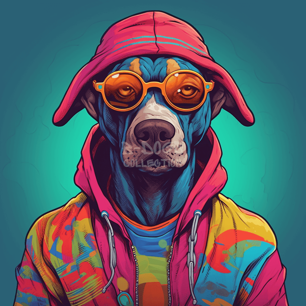 B-dogs is NFT art that features dogs as its motif and incorporates hip-hop culture into its design. This collection was released on Ethereum on May 24, 2023, and has gained popularity. The B-dogs collection has 100 different designs, each with its unique charm. This art has gained support from fans of dogs and hip-hop.